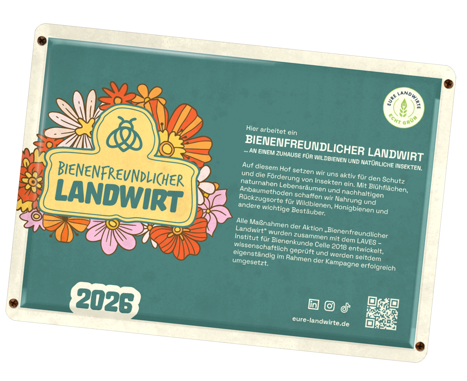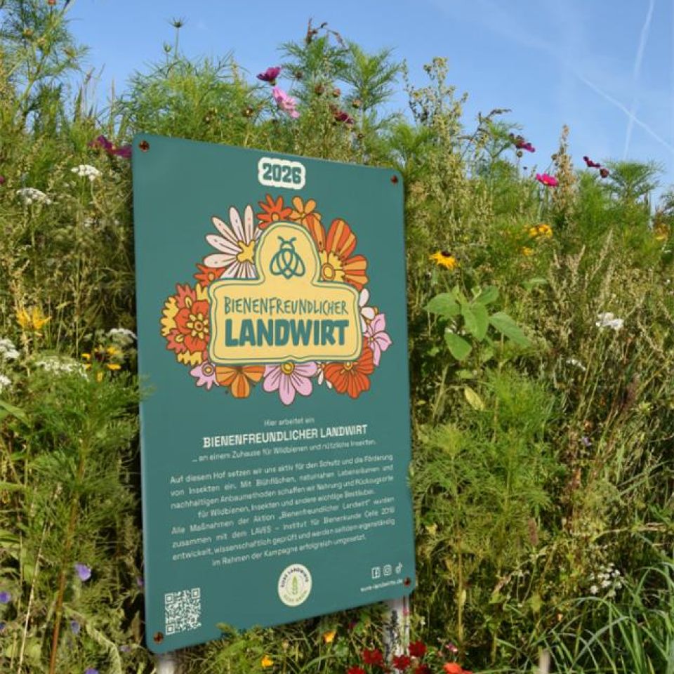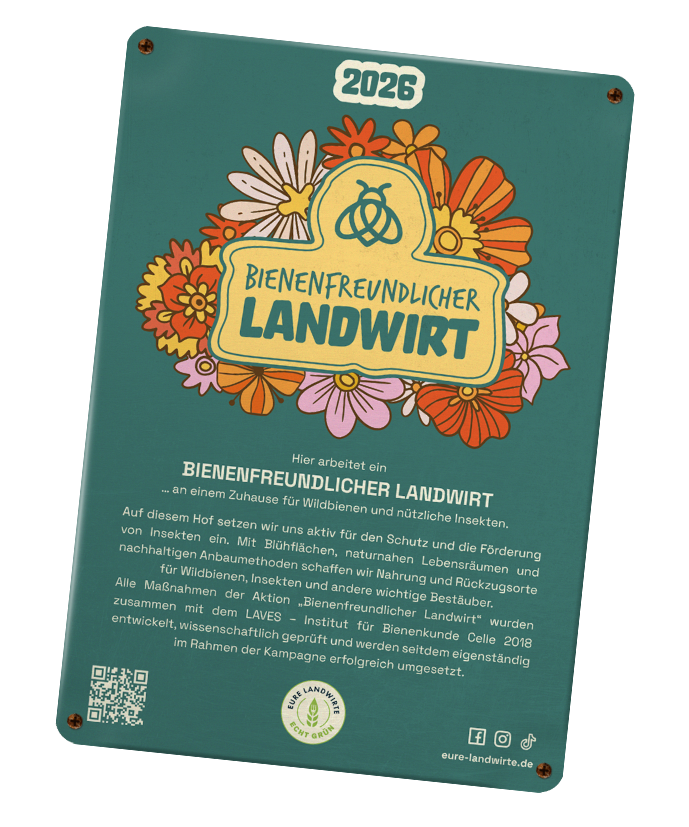Der Bienenfreundliche Landwirt (BFL) ist eine Aktion von Eure Landwirte – Echt grün e.V., die zeigt, wie landwirtschaftliche Praxis und aktiver Insektenschutz zusammengehen. Seit 2019 machen jedes Jahr mehr Betriebe mit und setzen konkrete Maßnahmen für Wildbienen, Insekten und andere wichtige Bestäuber um – auf der Hofstelle, auf Acker- und Grünlandflächen oder in Zusammenarbeit mit Imkern und Naturschutzorganisationen. Die Maßnahmen basieren auf einem klar definierten Kriterienkatalog, der 2018 gemeinsam mit dem LAVES Institut für Bienenkunde in Celle entwickelt und fachlich begleitet wurde. Die Maßnahmen werden seitdem eigenständig im Rahmen der Kampagne erfolgreich umgesetzt. Um teilzunehmen, wählen Landwirte aus verschiedenen Kategorien Maßnahmen aus und erreichen eine festgelegte Mindestpunktzahl. So bleibt der Einsatz nachvollziehbar, praxisnah und überprüfbar. Der Bienenfreundliche Landwirt steht für freiwilliges Engagement, Verantwortung und sichtbare Biodiversität – direkt dort, wo Landwirtschaft stattfindet.