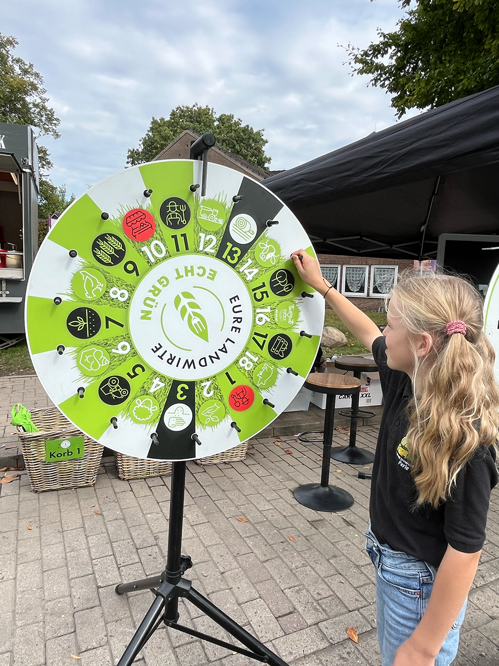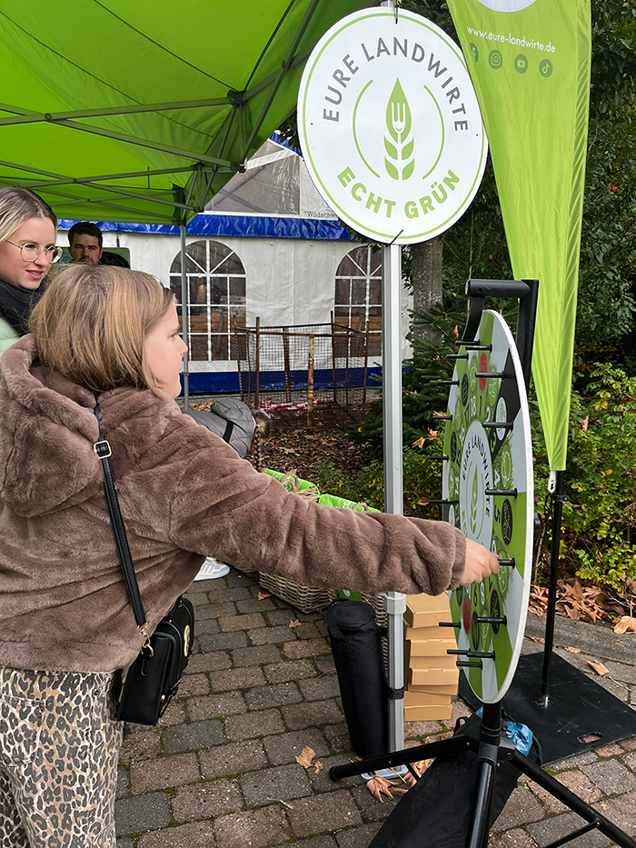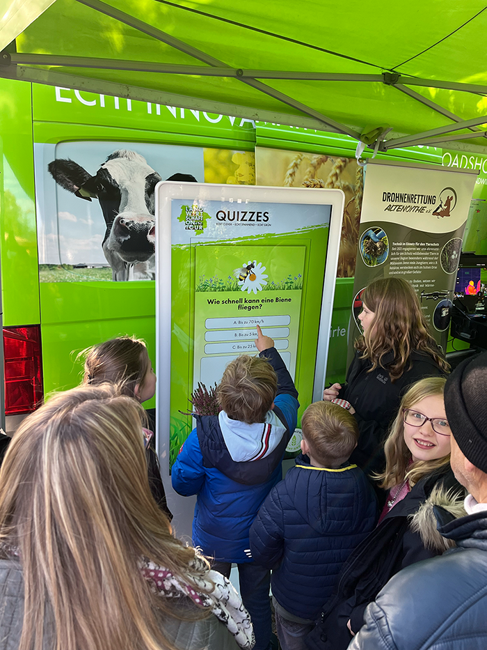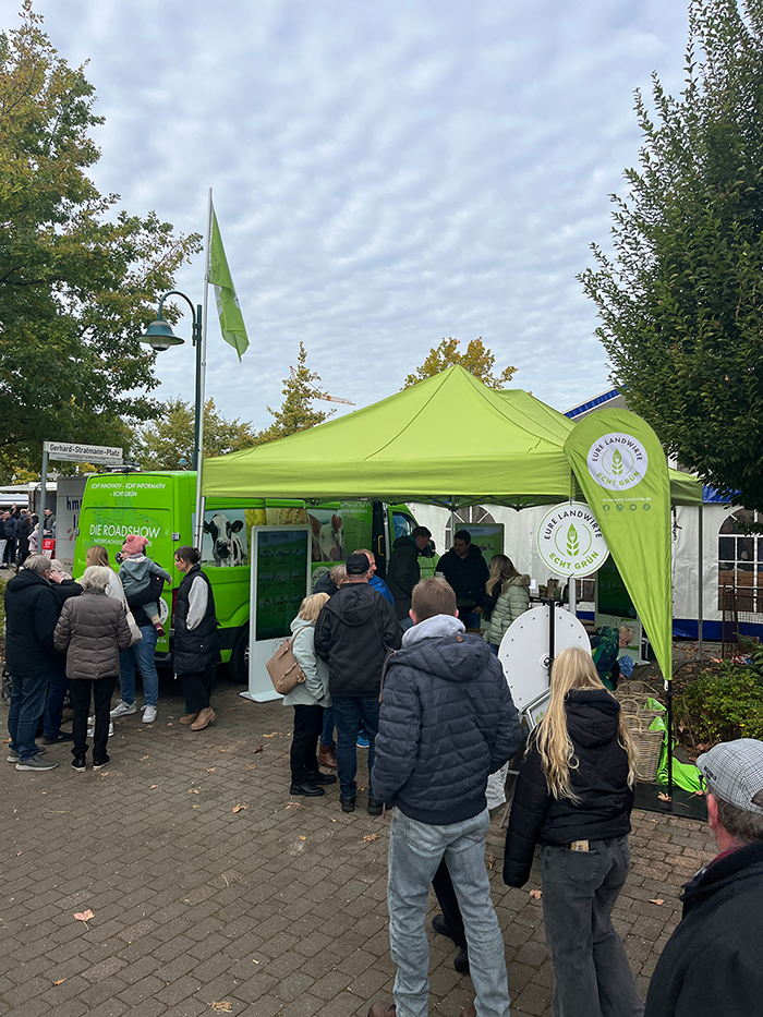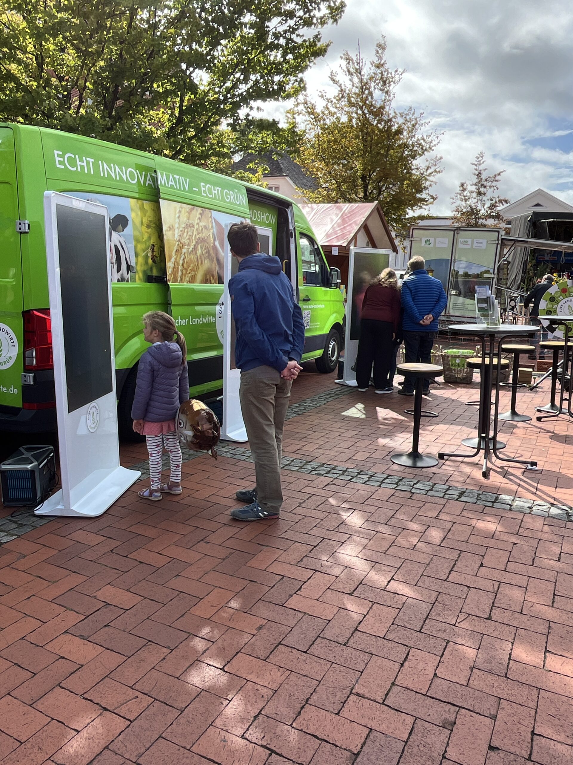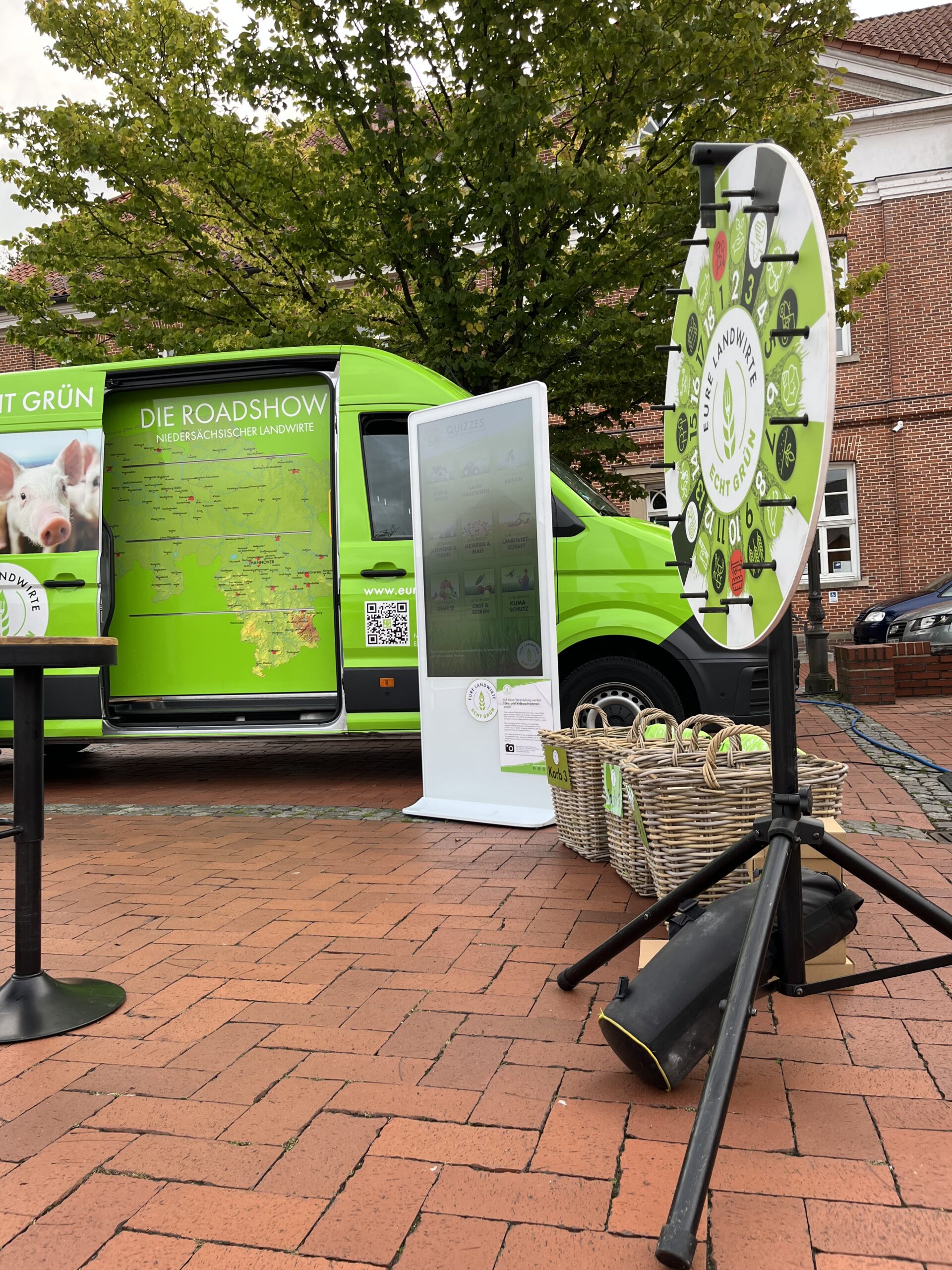 Seit 2023 findet die spannende Roadshow statt, bei der “Eure Landwirte – Echt grün“ ganz Niedersachsen besucht und an insgesamt 26 Terminen Themen rund um die moderne niedersächsische Landwirtschaft vorstellt. “Echt grün“ lädt dazu ein, über die Landwirtschaft in Niedersachsen ins Gespräch zu kommen. Auf drei Mediastelen können die Besucher interaktive Inhalte in einem Quiz entdecken und authentische Einblicke in die niedersächsische Landwirtschaft erhalten. Für Familien mit Kindern gibt es landwirtschaftliches Spielzeug und ein Glücksrad mit vielen Gewinnen.
