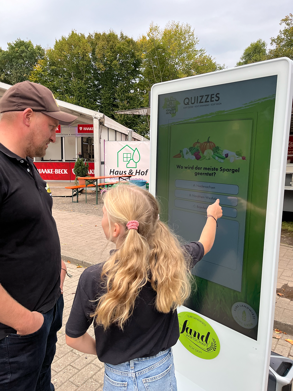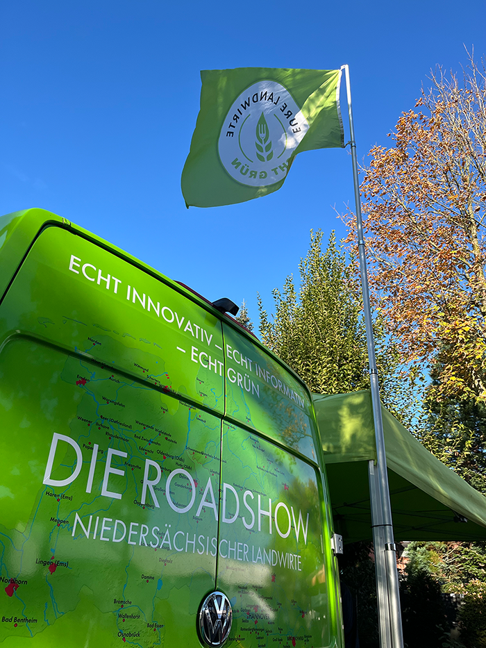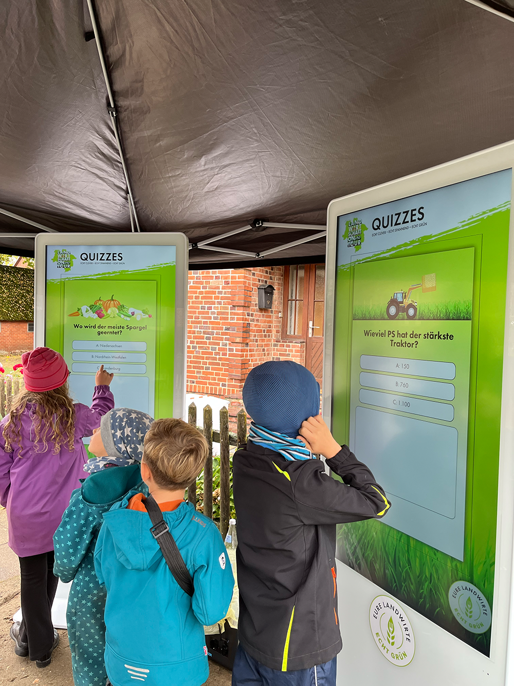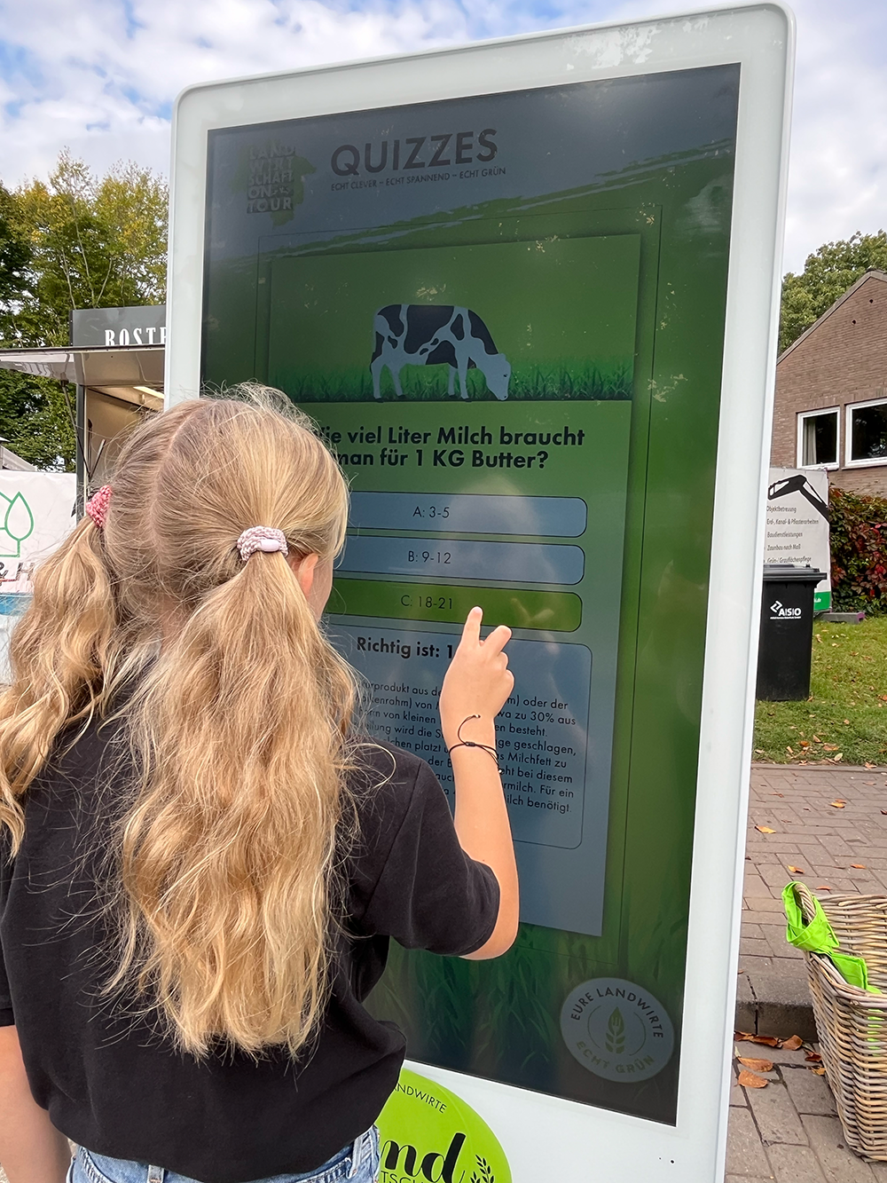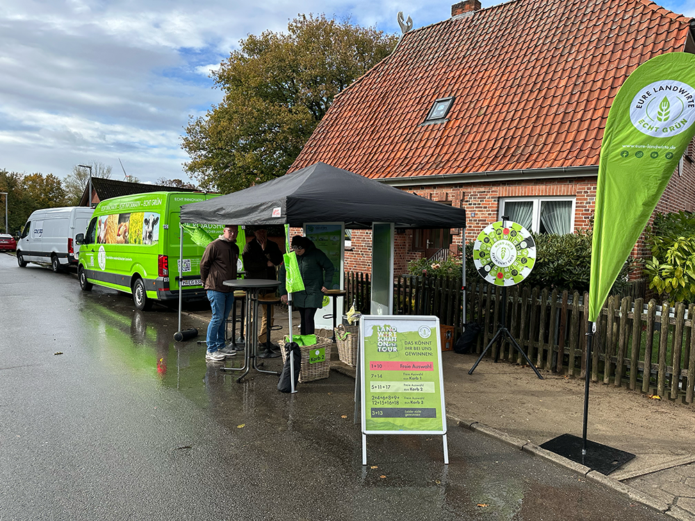 Seit 2023 findet die spannende Roadshow statt, bei der “Eure Landwirte – Echt grün“ ganz Niedersachsen besucht und an insgesamt 26 Terminen Themen rund um die moderne niedersächsische Landwirtschaft vorstellt. “Echt grün“ lädt dazu ein, über die Landwirtschaft in Niedersachsen ins Gespräch zu kommen. Auf drei Mediastelen können die Besucher interaktive Inhalte in einem Quiz entdecken und authentische Einblicke in die niedersächsische Landwirtschaft erhalten. Für Familien mit Kindern gibt es landwirtschaftliches Spielzeug und ein Glücksrad mit vielen Gewinnen.