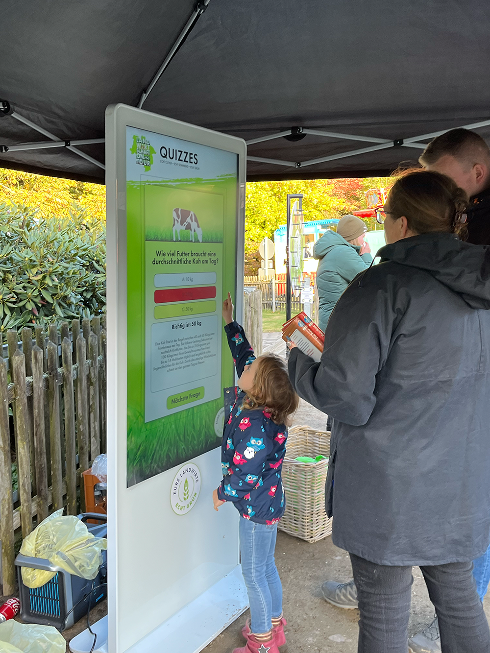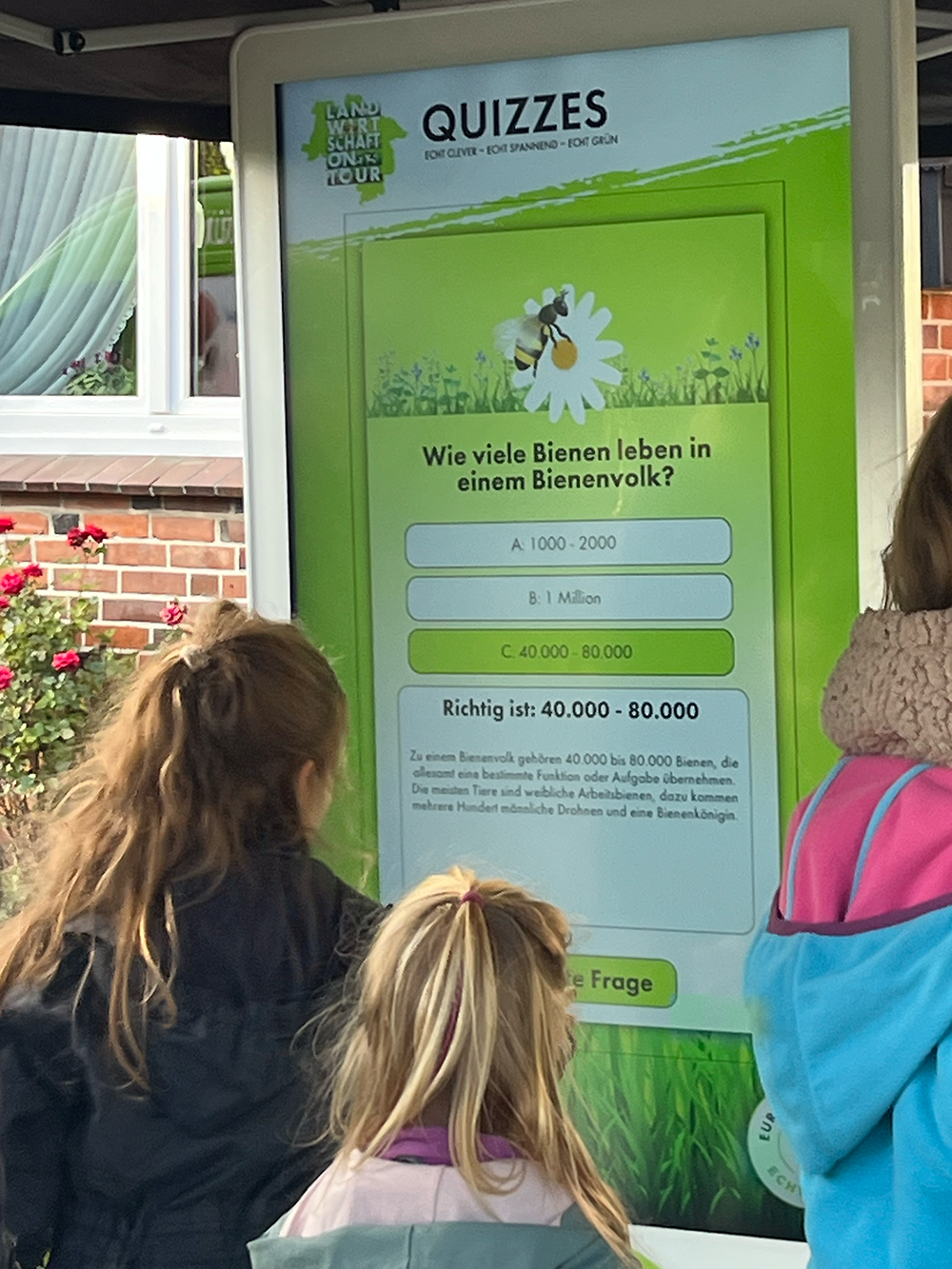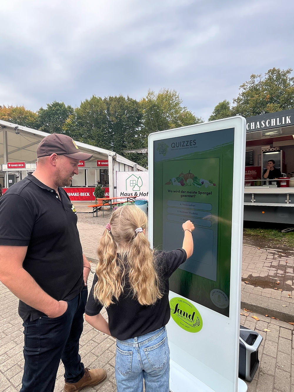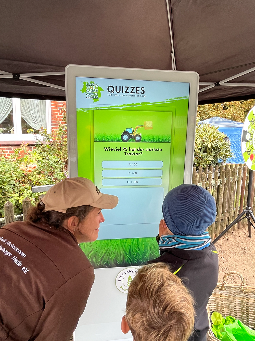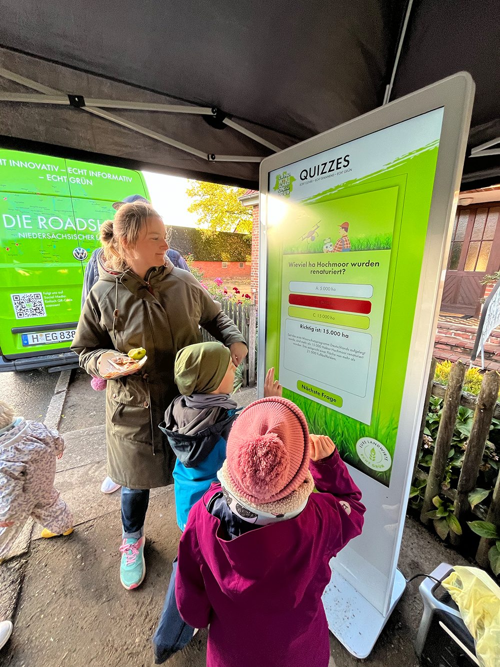 Seit 2023 findet die spannende Roadshow statt, bei der “Eure Landwirte – Echt grün“ ganz Niedersachsen besucht und an insgesamt 26 Terminen Themen rund um die moderne niedersächsische Landwirtschaft vorstellt. “Echt grün“ lädt dazu ein, über die Landwirtschaft in Niedersachsen ins Gespräch zu kommen. Auf drei Mediastelen können die Besucher interaktive Inhalte in einem Quiz entdecken und authentische Einblicke in die niedersächsische Landwirtschaft erhalten. Für Familien mit Kindern gibt es landwirtschaftliches Spielzeug und ein Glücksrad mit vielen Gewinnen.